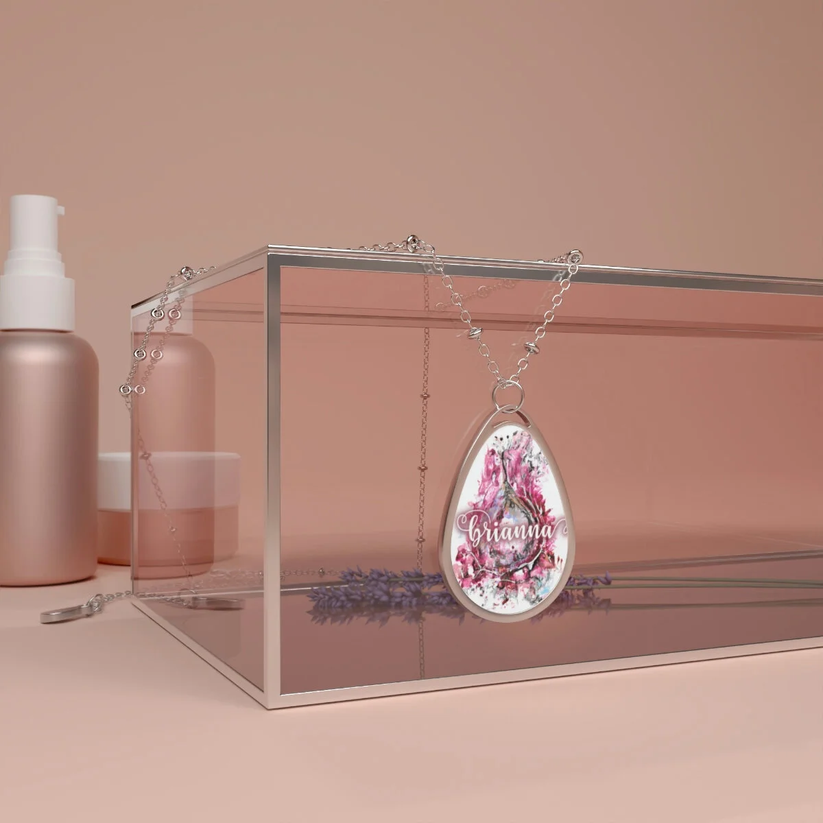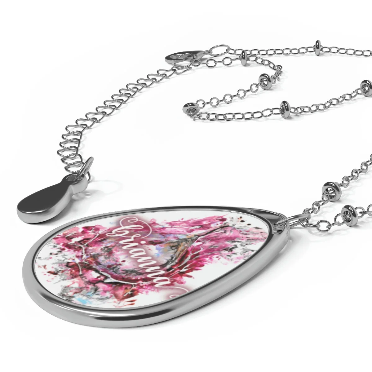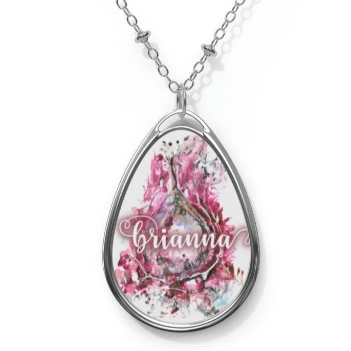 The pendant and its chain are made with robust brass material for dazzling looks that are long-lasting. The print panel is made with aluminum while the pendant itself comes in a unique shape of an ellipse.